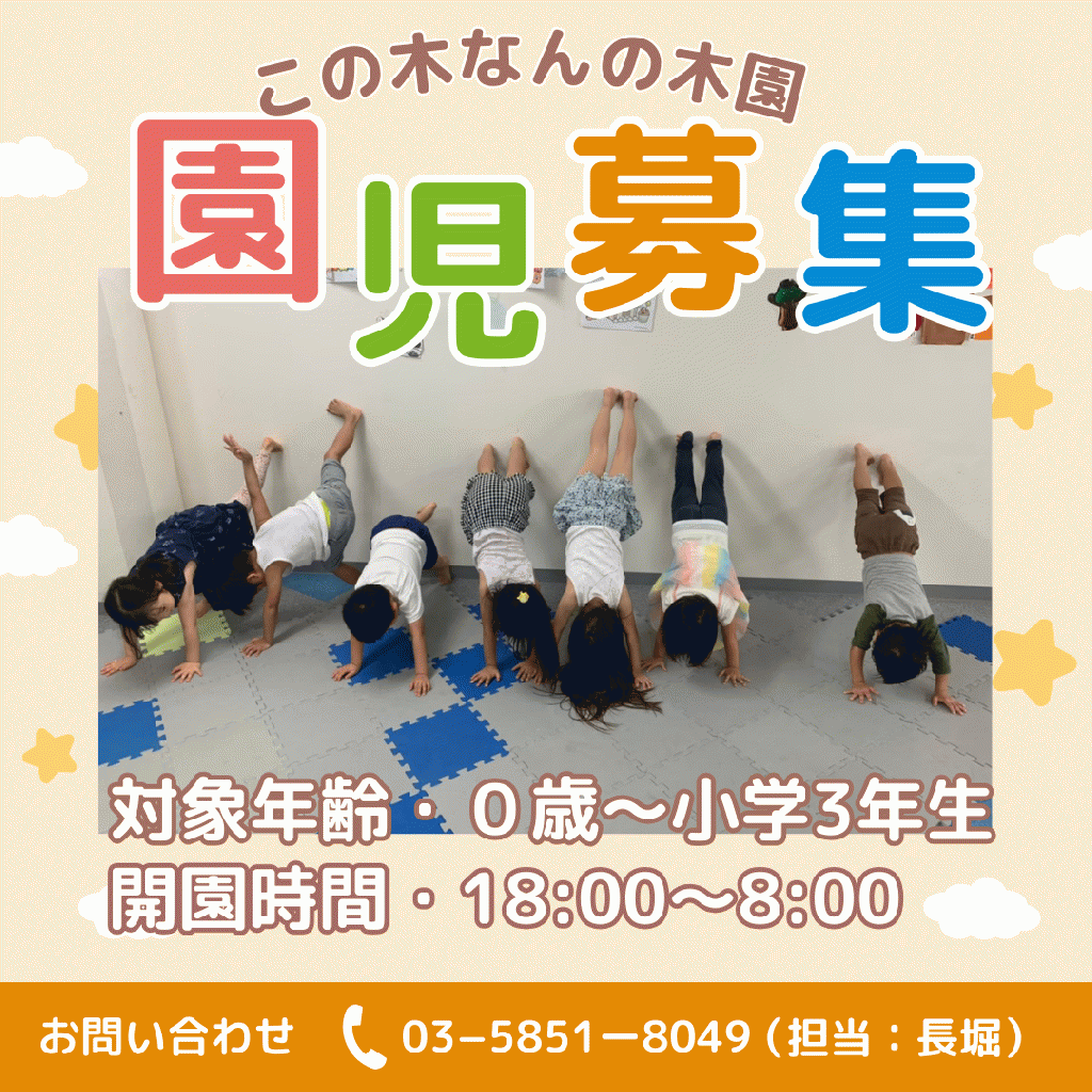 ・受け入れは8カ月~となります。(未満児は要相談)